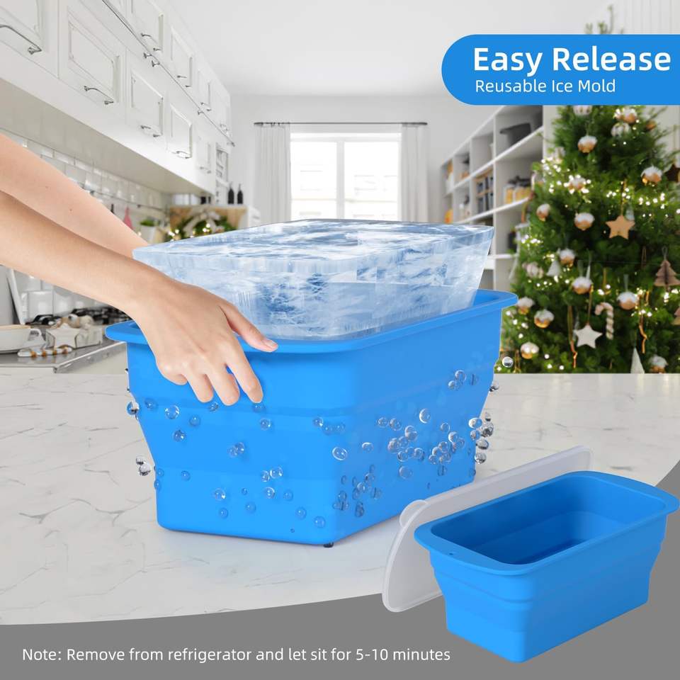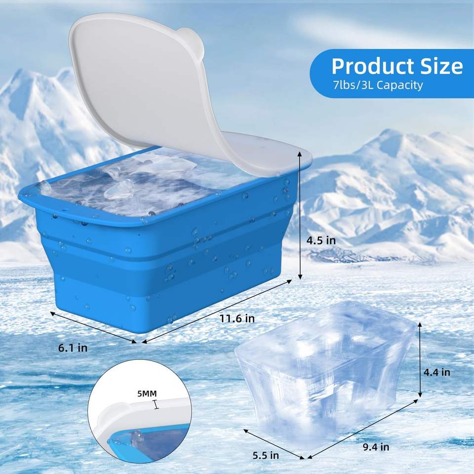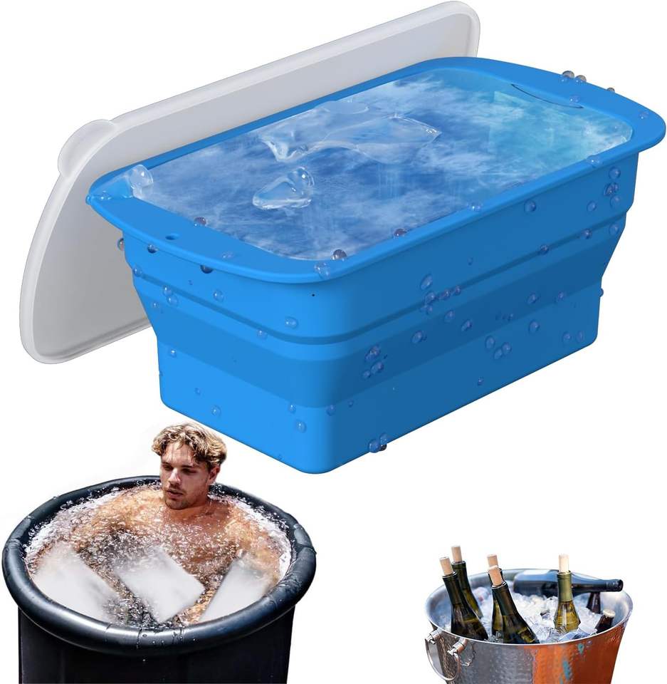 Moule à glaçons extra large 9.6 LB Bac à glaçons en silicone avec couvercles Bac à glaçons réutilisable et pliable pour baignoire