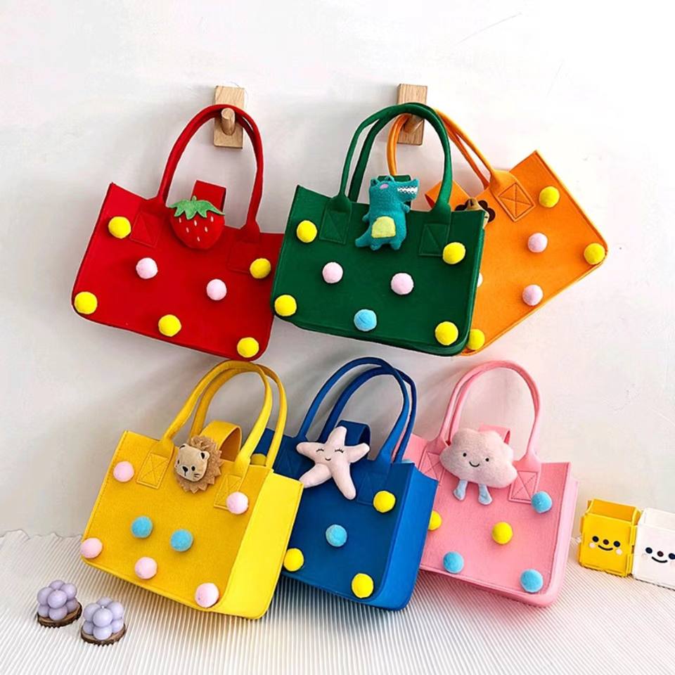 Extra Large Pompon Panier De Rangement Feutre Dessin Animé Animaux Pique-Nique Voyage Sac À Main Femmes Shopping Sac Fourre-Tout Sac pour Plage Stockage Cadeaux
