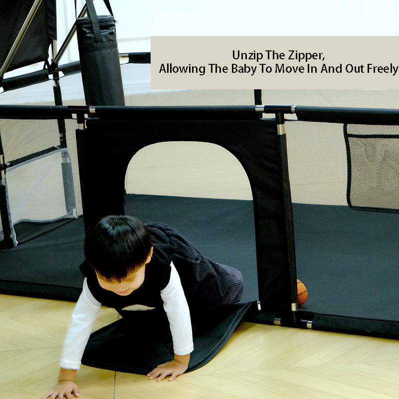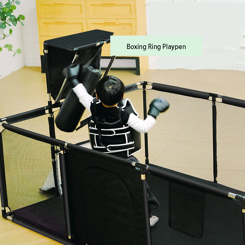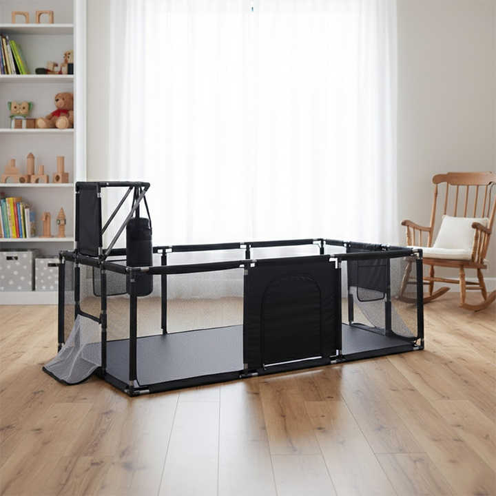 Parc de jeu rectangulaire extra large pour bébé avec sac de frappe et filet de football, aire de sport intérieure pour tout-petits