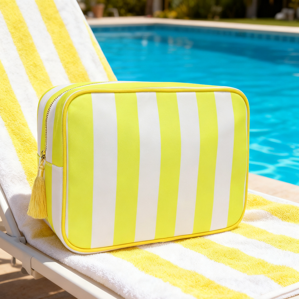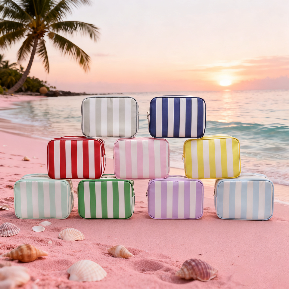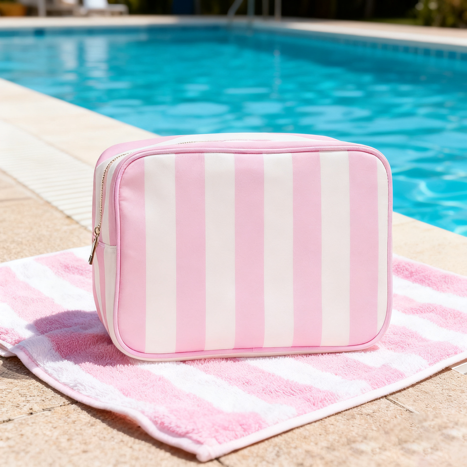 Pochette à rayures brodée personnalisée de grande taille pour femmes et hommes trousse de toilette de voyage trousse à cosmétiques trousse à maquillage à rayures