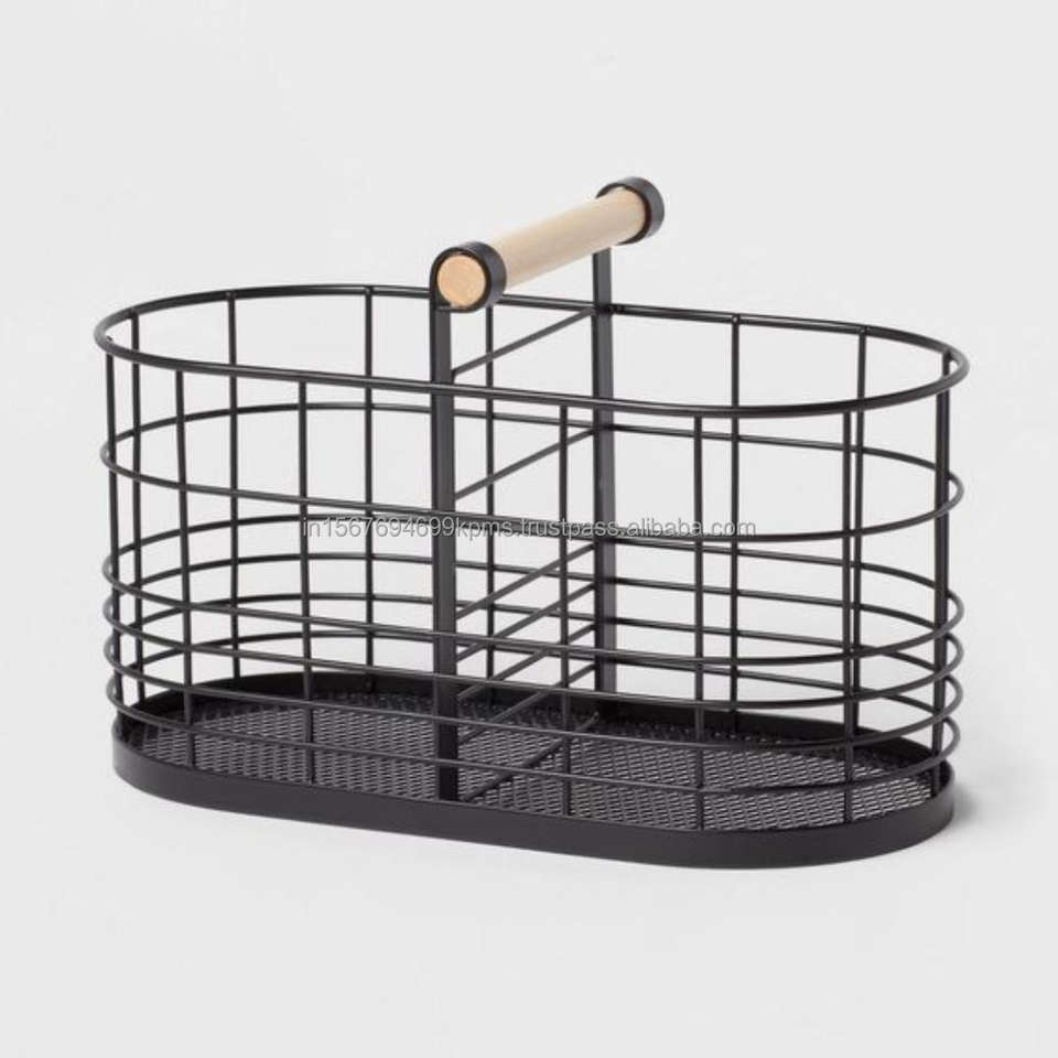 Panier de rangement extra large avec poignées en bois Panier en métal de grande qualité pour restaurants et hotles à bas prix