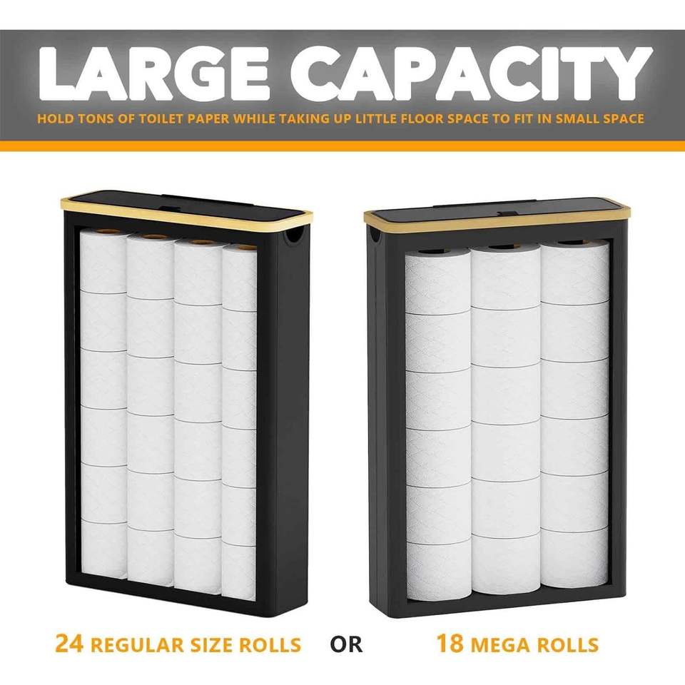 Porte-papier toilette extra large et fin avec couvercle, peut contenir 24 rouleaux standard ou 18 rouleaux géants, panier à papier pratique