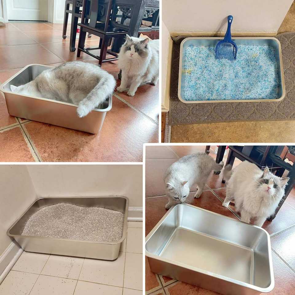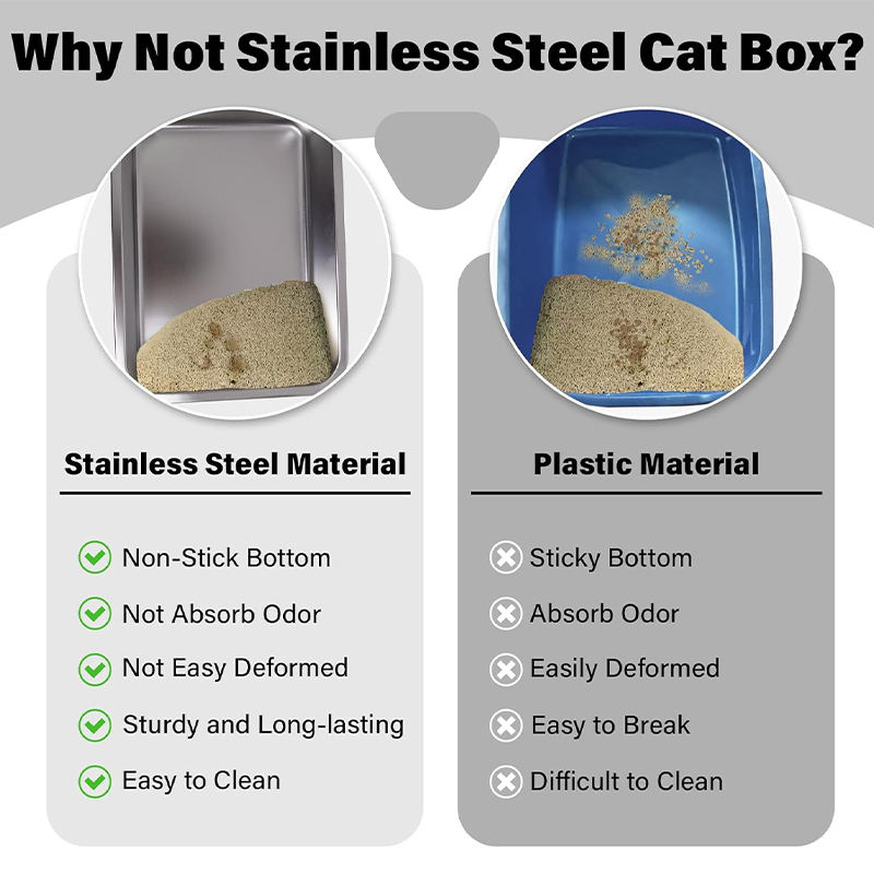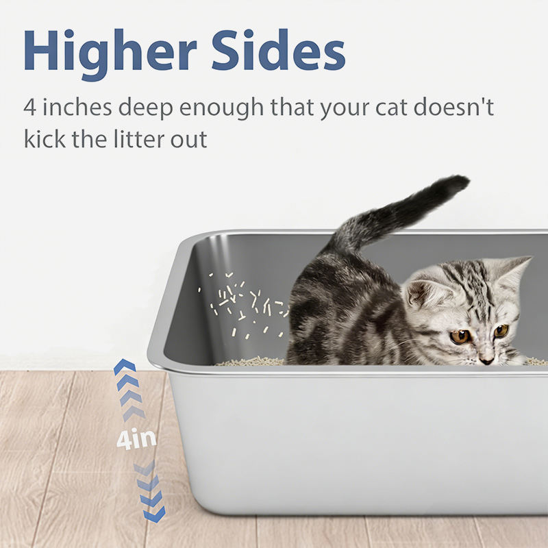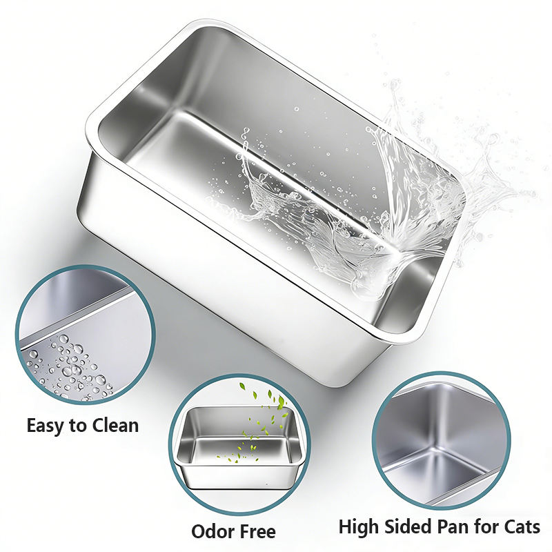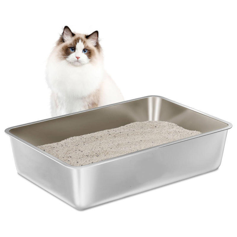 Bac à litière pour chat en acier inoxydable extra large XXL à côtés hauts antiadhésif sans odeur Bac à litière pour chat Lapins