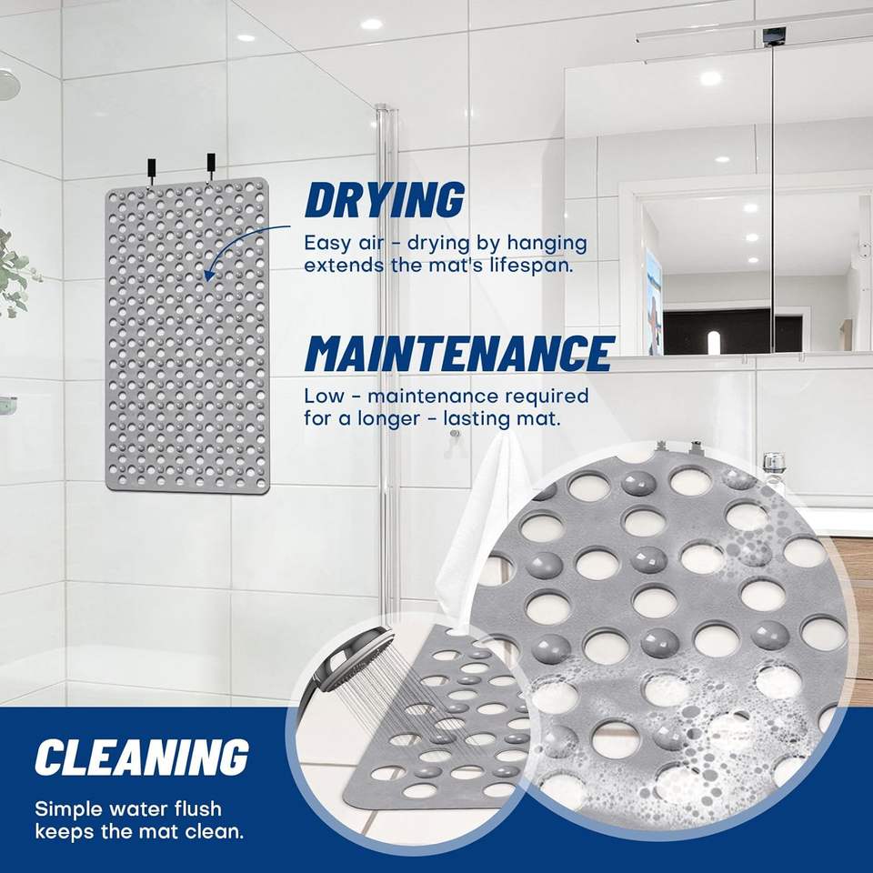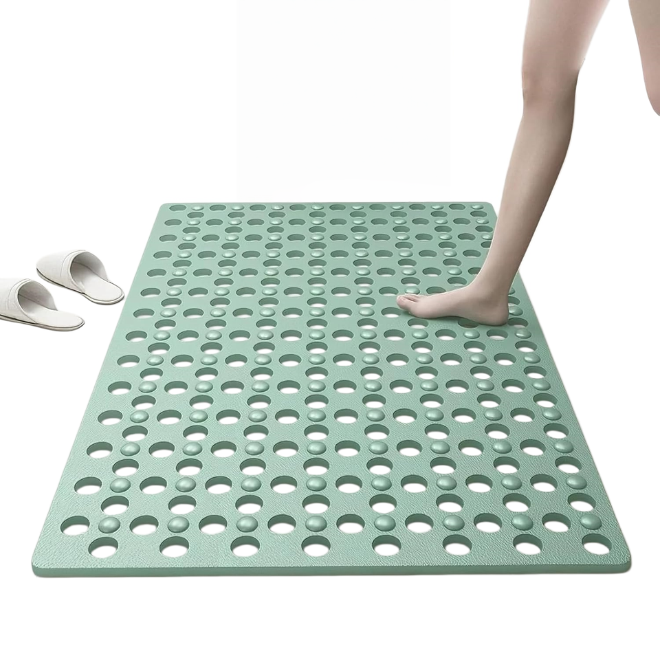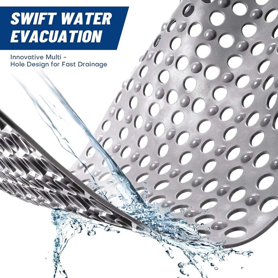 Tapis de douche TPE extra large antidérapant avec trous de drainage et ventouses