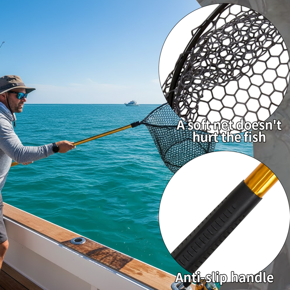 Épuisette télescopique extra large en aluminium Filet de rechange en PVC pour la pêche au bar et à la truite