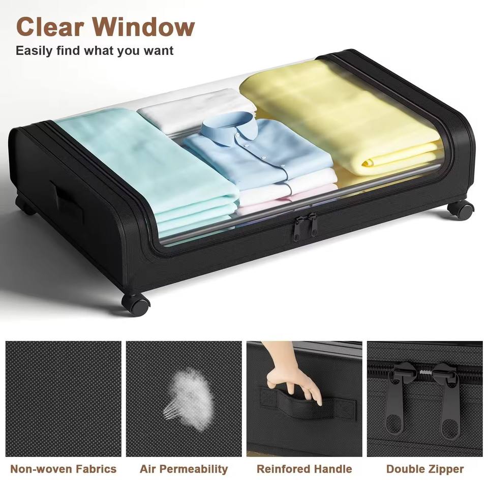 Conteneurs de rangement sous lit extra larges et imperméables avec roulettes, en tissu Oxford non tissé, sac de lit en métal