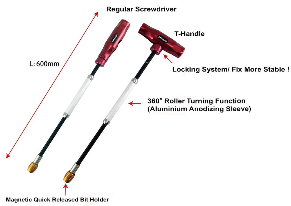 Nom du produit:Tournevis à poignée en T extra long à 2 voies avec porte-embout