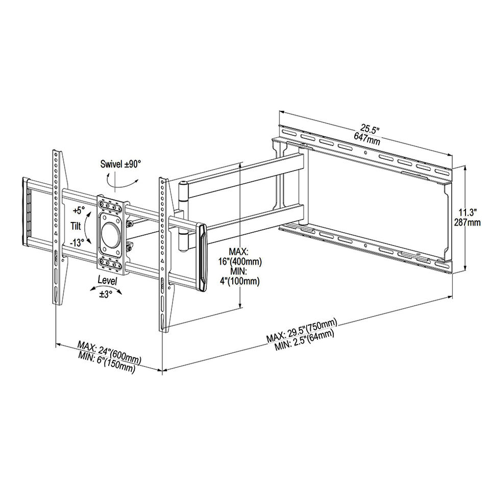 Bras extra long articulé à 80 degrés pour téléviseur pivotant, montage mural assorti à un téléviseur de 88 pouces