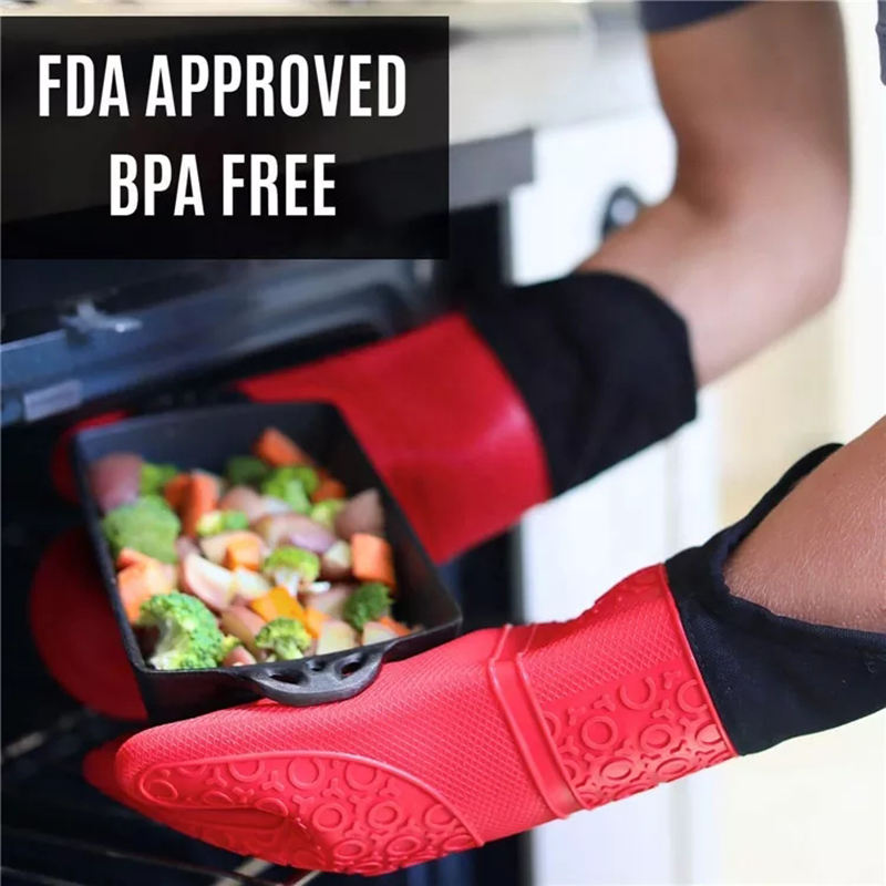 Gants de cuisine isolants en Silicone Extra longs, Double doublure, rouge Pizza professionnelle, support de casserole pour four à micro-ondes, gants résistants à la chaleur