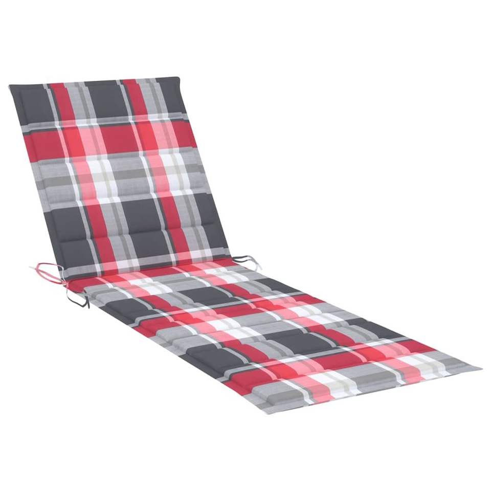 Chaise longue de patio extra longue en bois d'acacia gris avec coussin à carreaux, chaise longue inclinable d'extérieur