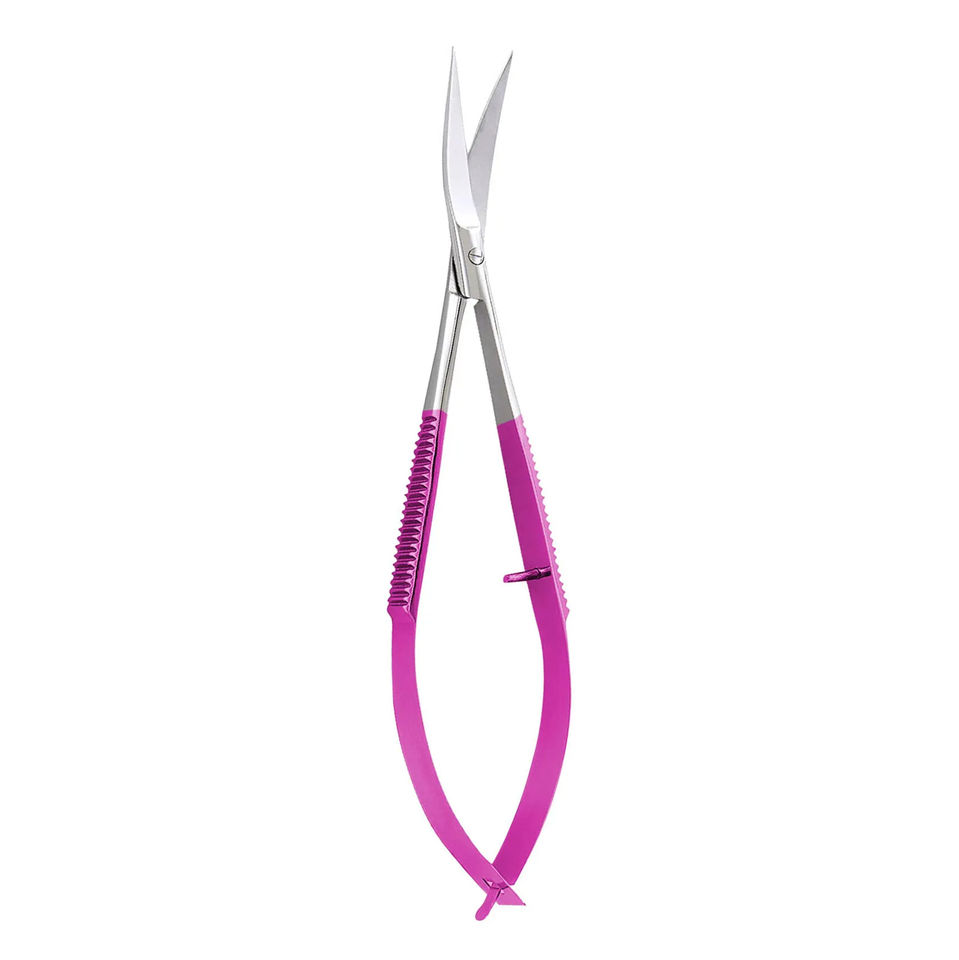 Ciseaux à micro-ressorts roses extra pointus pour sourcils Life Care Ciseaux de beauté droits et incurvés avec poignée à ressort