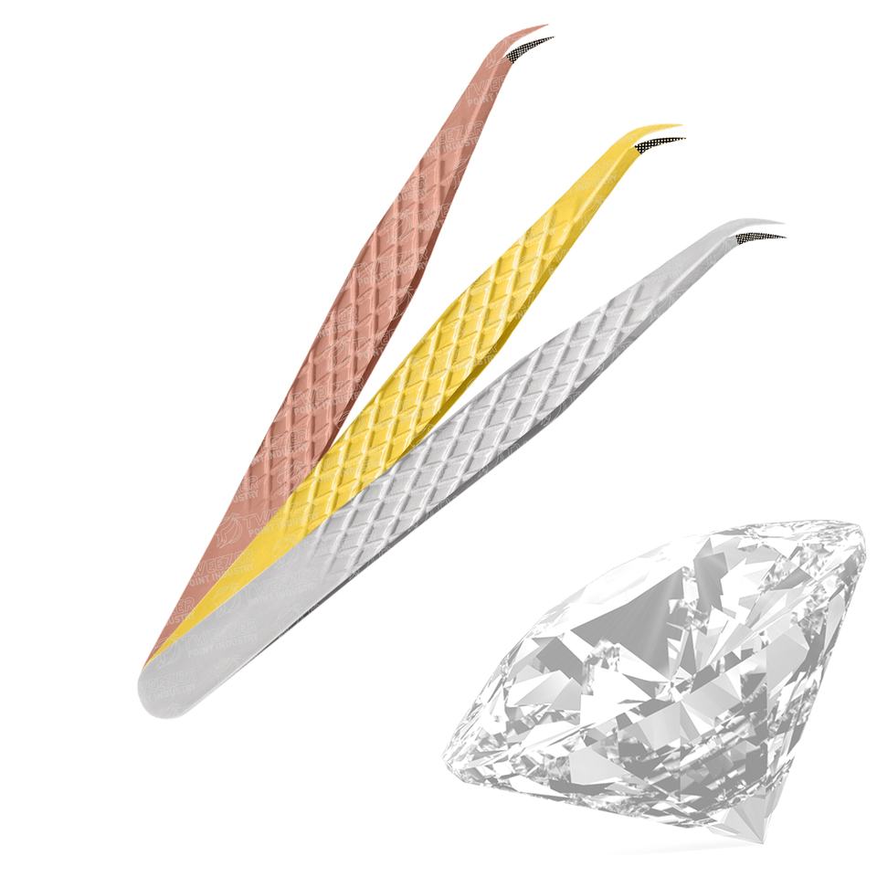Pince à épiler professionnelle d'extension de cils de conception de diamant extra pointu Volume incurvé/fibre forte prise pointue nouveau Design inoxydable