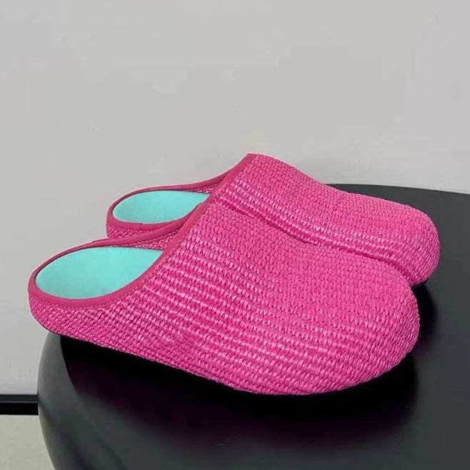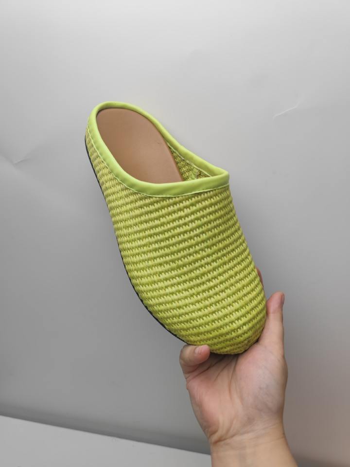 Mules plates pour femmes en lin tissé de haute qualité, grande taille, style bout rond large, demi-chaussons à enfiler