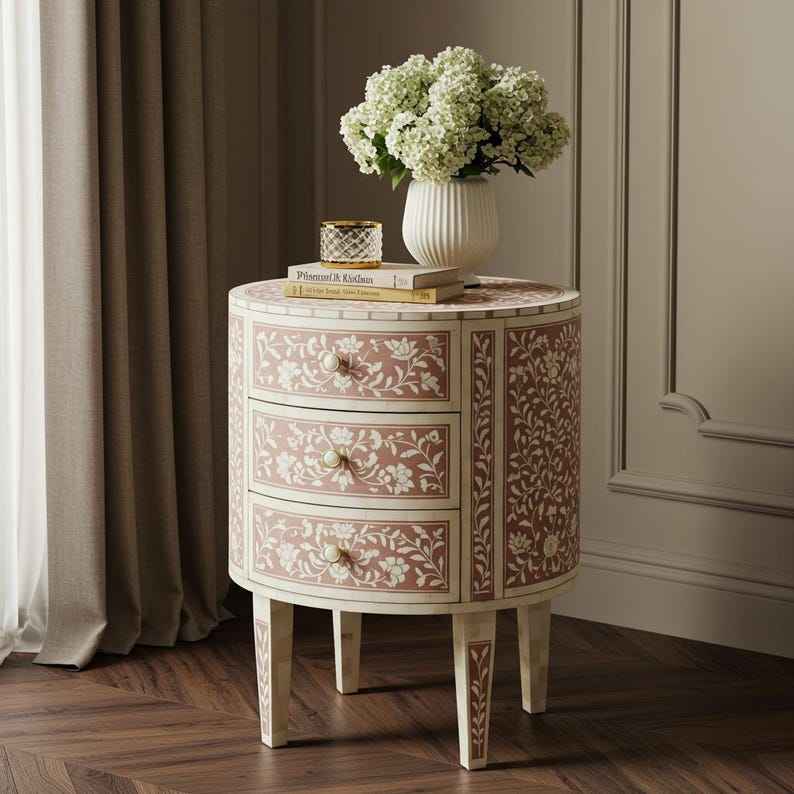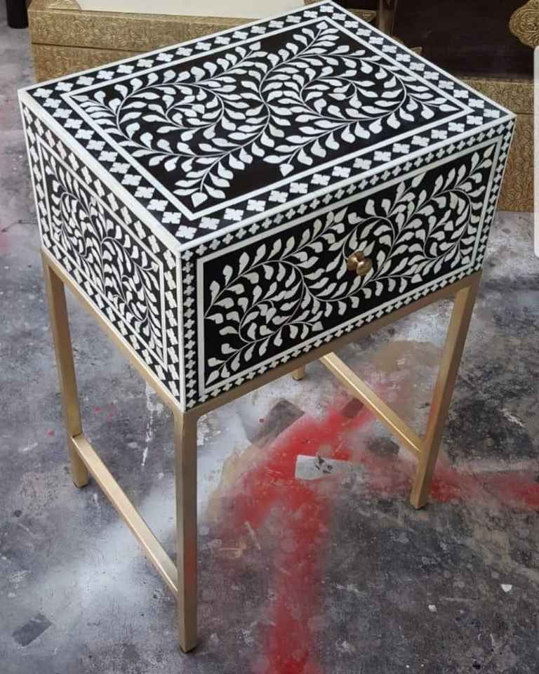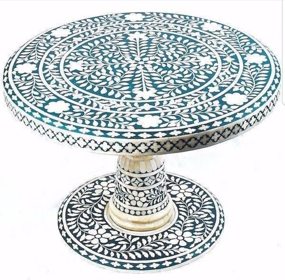 Table ronde de style ange avec incrustation d'os faite à la main et écologique avec base pliable pour la maison, l'hôtel et le bureau.