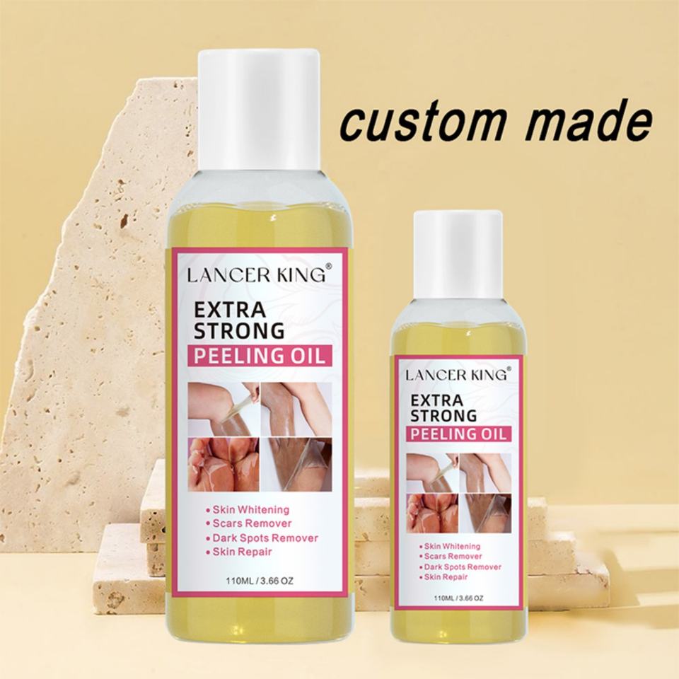 Huile exfoliante jaune extra forte pour le soin de la peau du corps, logo personnalisé, odeur fraîche, faible MOQ d'usine