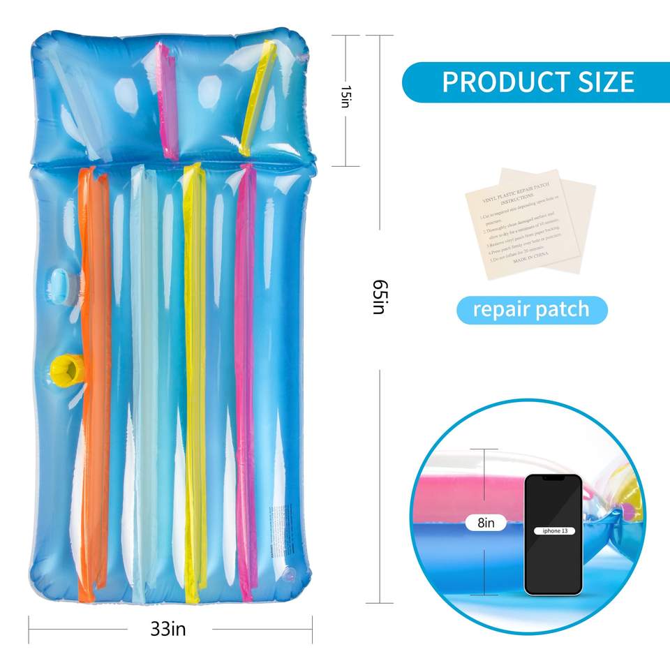 Matelas pneumatique en PVC épaissi pour piscine gonflable extra large pour lacs/plages, chaise longue ultra confortable avec appui-tête