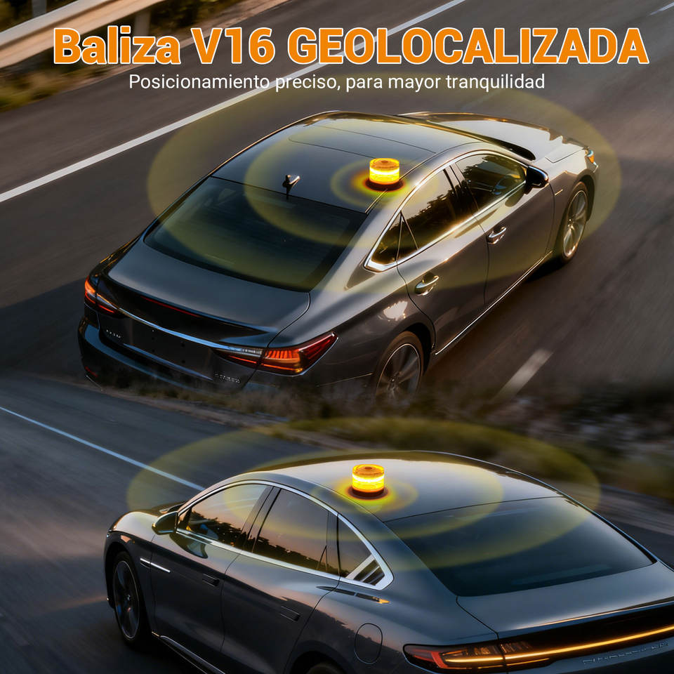ExtraStar Baliza V16 DGT 2026 Approved GPS Geolocation Emergency Beacon with 9V Battery, IP54 Waterproof Car Warning Light