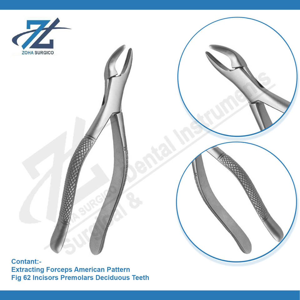 Pince d'extraction motif américain figue 62 incisives prémolaires à feuilles caduques qualité allemande Starnderd ensemble d'instruments chirurgicaux dentaires