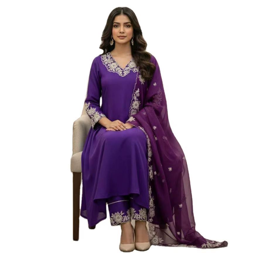 Salwar de qualité supérieure avec broderies miroir, longueur genou, couleur optimale, et ensemble dupatta assorti pour femme, idéal pour les fêtes.