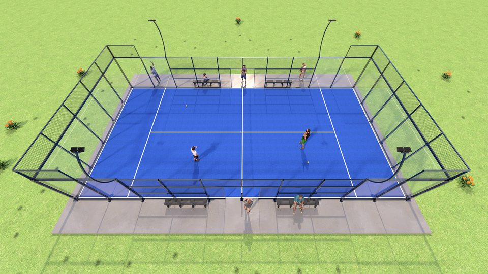 Terrain de padel résistant aux intempéries extrêmes, haute résistance au vent, verre panoramique, équipement professionnel, vente en gros mondiale