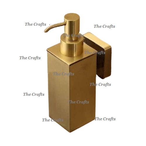 Distributeur de savon liquide en métal couleur or, design exceptionnel, pour usage domestique, hôtelier et en restauration.