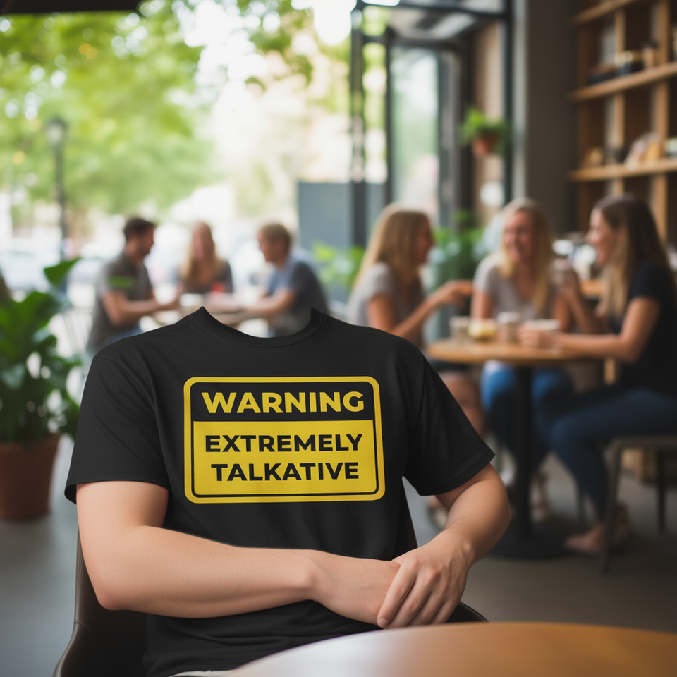 T-shirt humoristique avec signe d'avertissement extrêmement bavard, noir, unisexe pour adultes