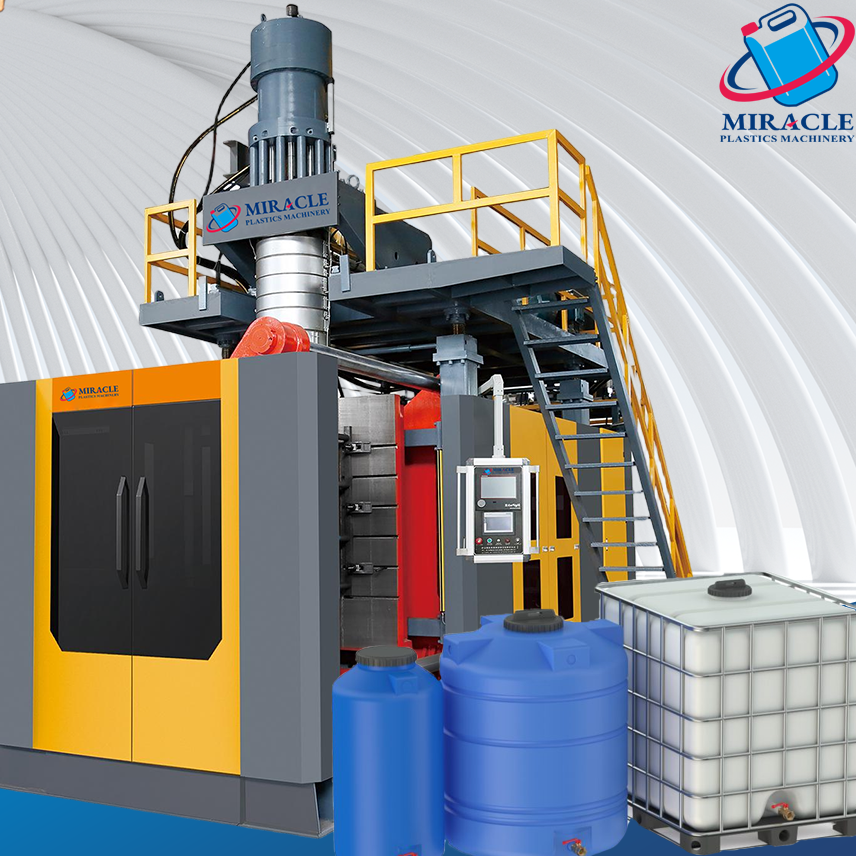 Machine d'extrusion-soufflage pour seaux de liquides chimiques et fûts de transfert d'huile, épaisseur de paroi constante, faible taux de déchets