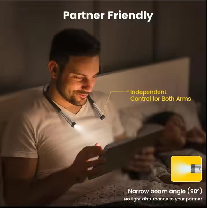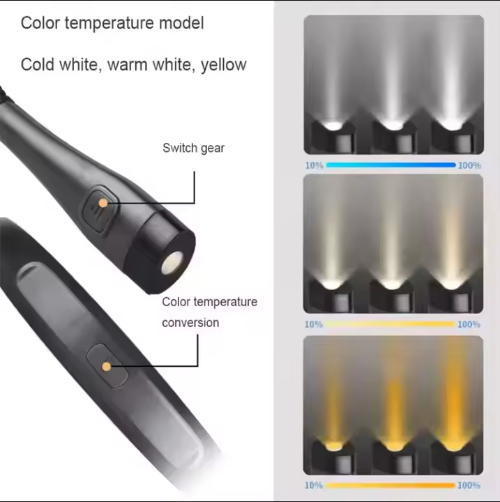 Lampe de lecture pour les yeux, 3 couleurs, luminosité réglable, col flexible, lampe de lecture LED rechargeable pour le cou