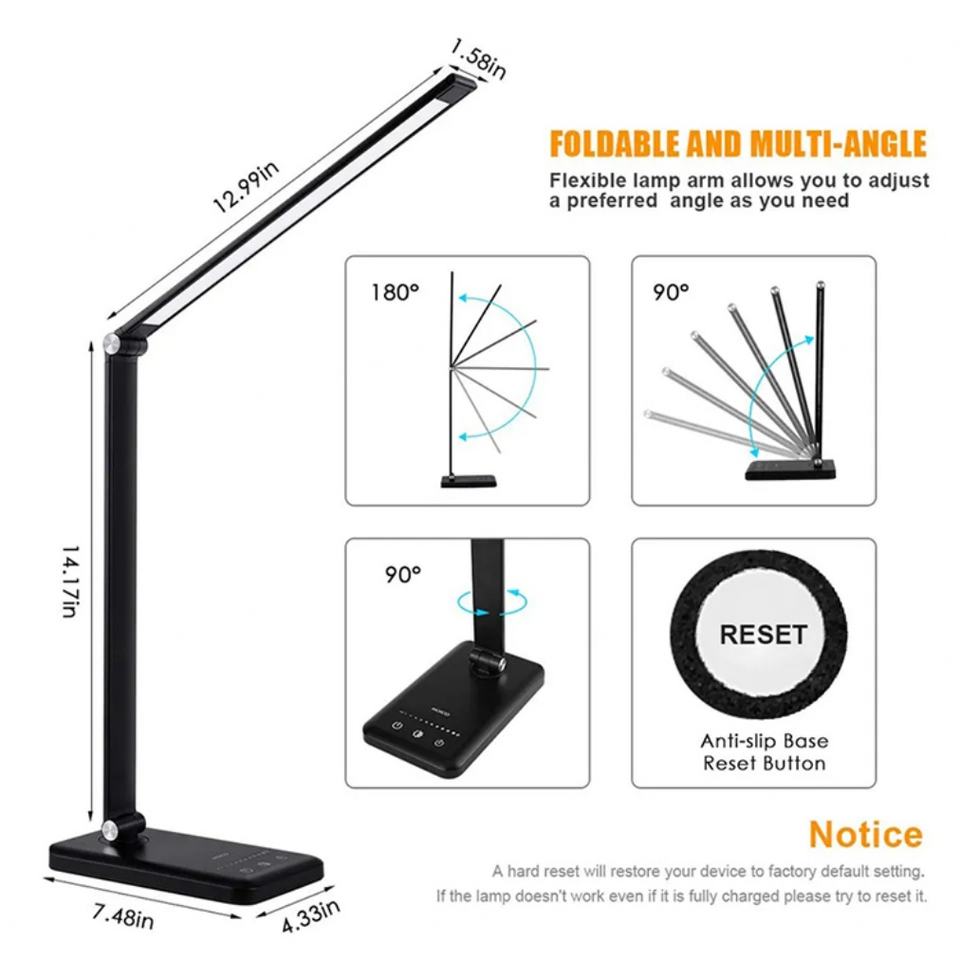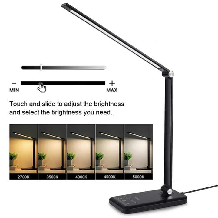 Lampe de bureau LED tactile USB pour le soin des yeux avec 5 modes d'éclairage et 5 niveaux de luminosité, lampes de lecture LED