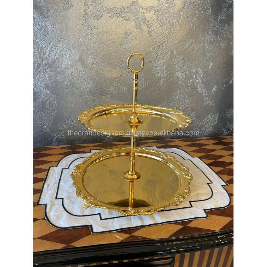 Support à gâteau accrocheur hauts plateaux de service ronds brillants mariage décoratif support à gâteau à 2 niveaux aspect de luxe qualité d'exportation par TCD