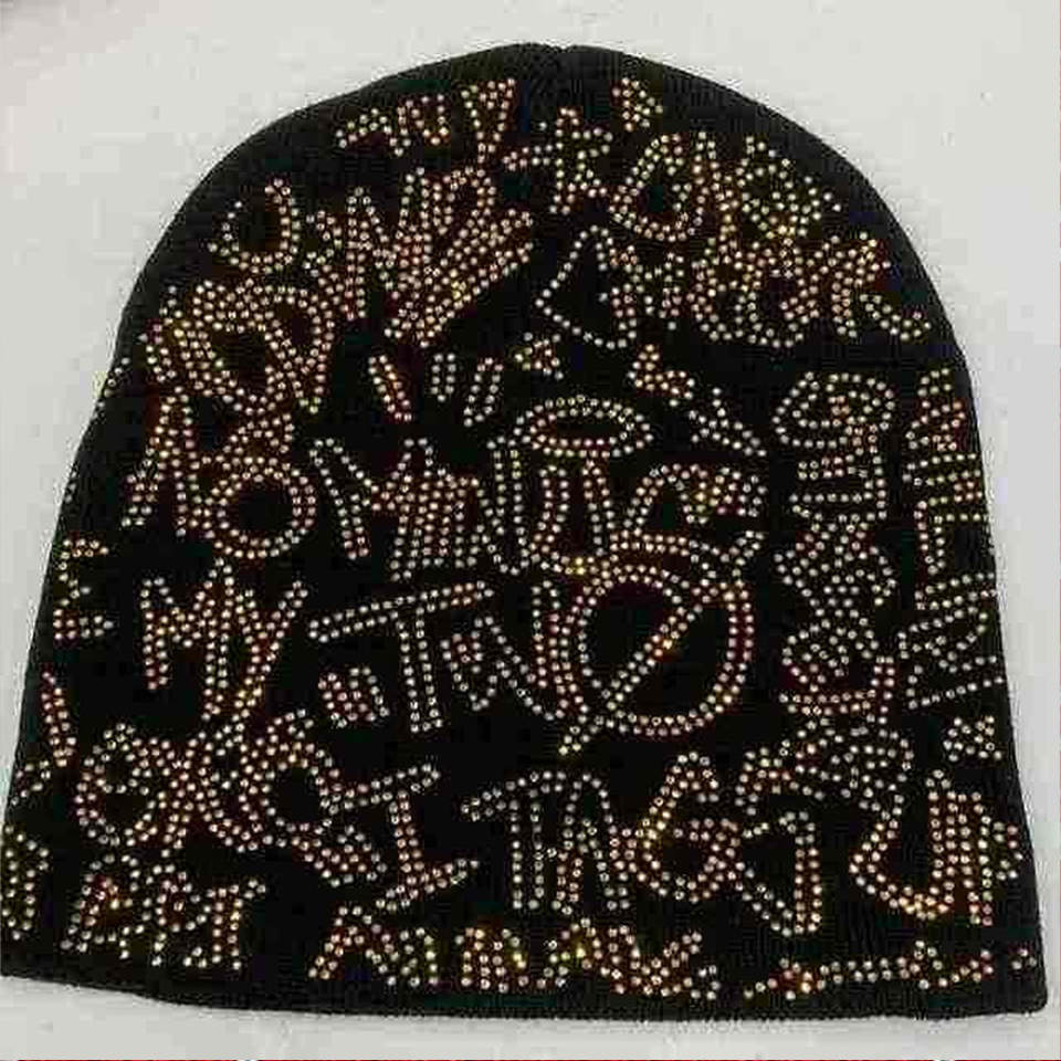 Bonnet d'hiver en laine mélangée à broderie 3D à carreaux, effet cristal éblouissant, élégant, orné de strass, tricoté à revers, personnalisable