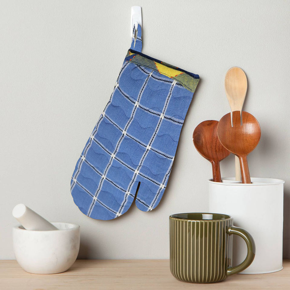 Fournisseur indien de gants de four professionnels en coton biologique, au design à carreaux teint en fil, très attrayants.