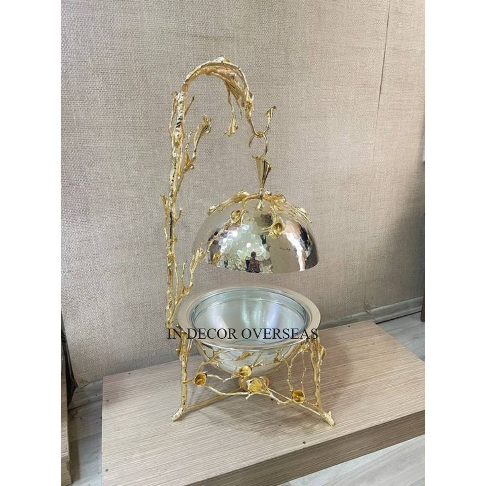 Look accrocheur de haute qualité plaqué or Floral Designer argent brillant poli en acier inoxydable de luxe chauffe-plat pour la restauration