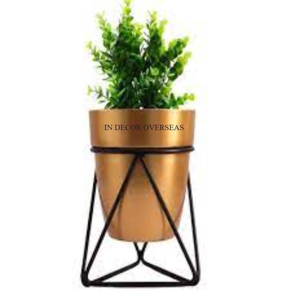 Look accrocheur Pots et jardinières en métal plaqué or de haute qualité avec support de couleur noire de concepteur unique à bas prix
