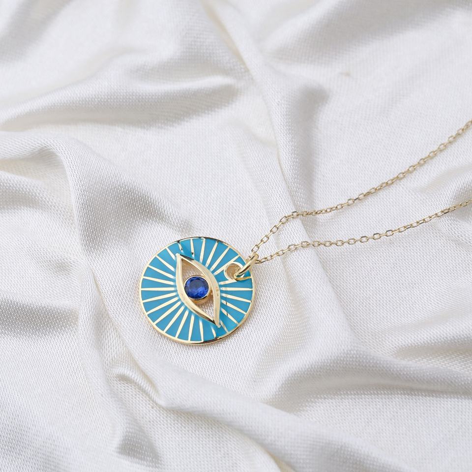 Eye Design Rond Émail Pendentif Fabriqué À La Main Turc 925 Bijoux En Argent Sterling