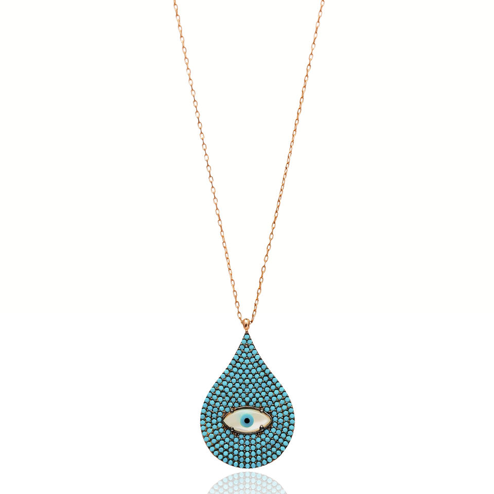 Oeil Poire Conception Turquoise Zircon Pierre Charme Pendentif Turc Fabriqué À La Main En Gros 925 Argent Sterling Bijoux