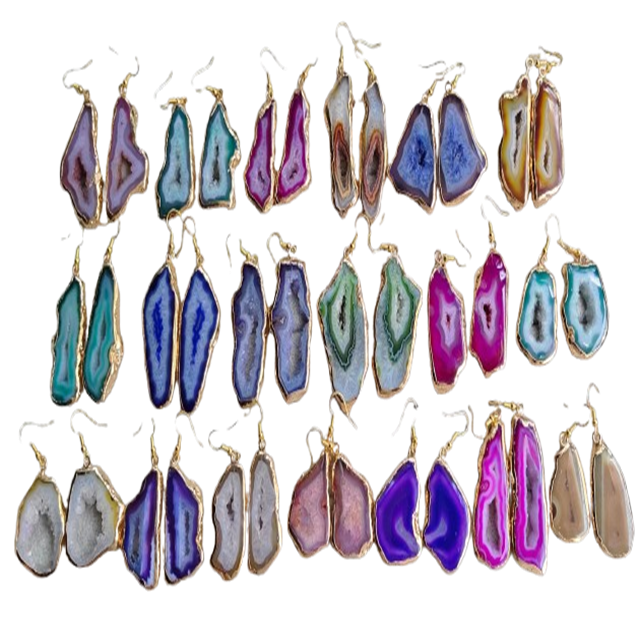 Œil Pierre Cristal Pierres Précieuses Sculptées avec Argent Électrolytique Gravure Style Mascotte Boucles D'oreilles
