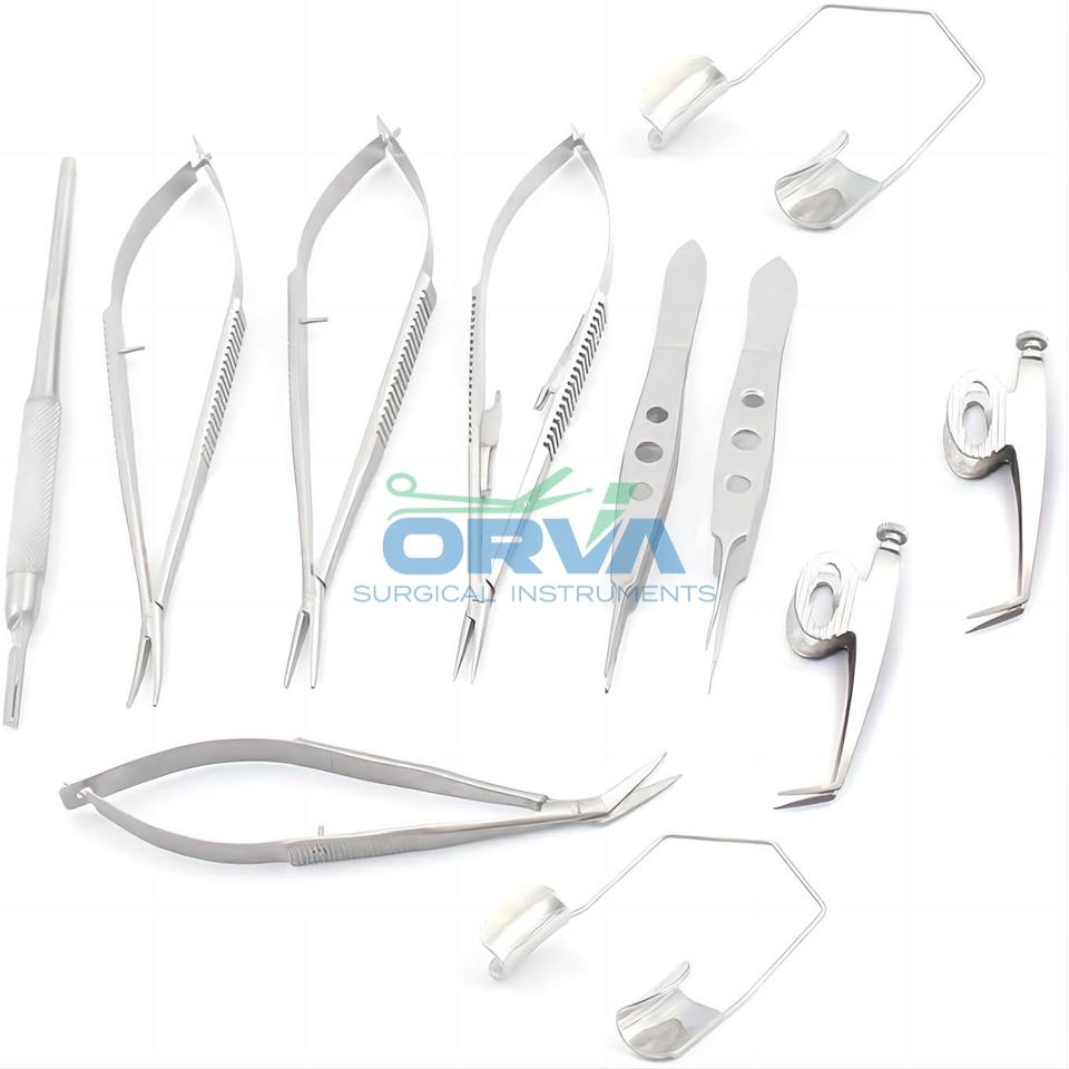Ensemble d'instruments chirurgicaux micro-opératoires en acier inoxydable certifiés CE, Classe II, alimentés par machine, avec service OEM