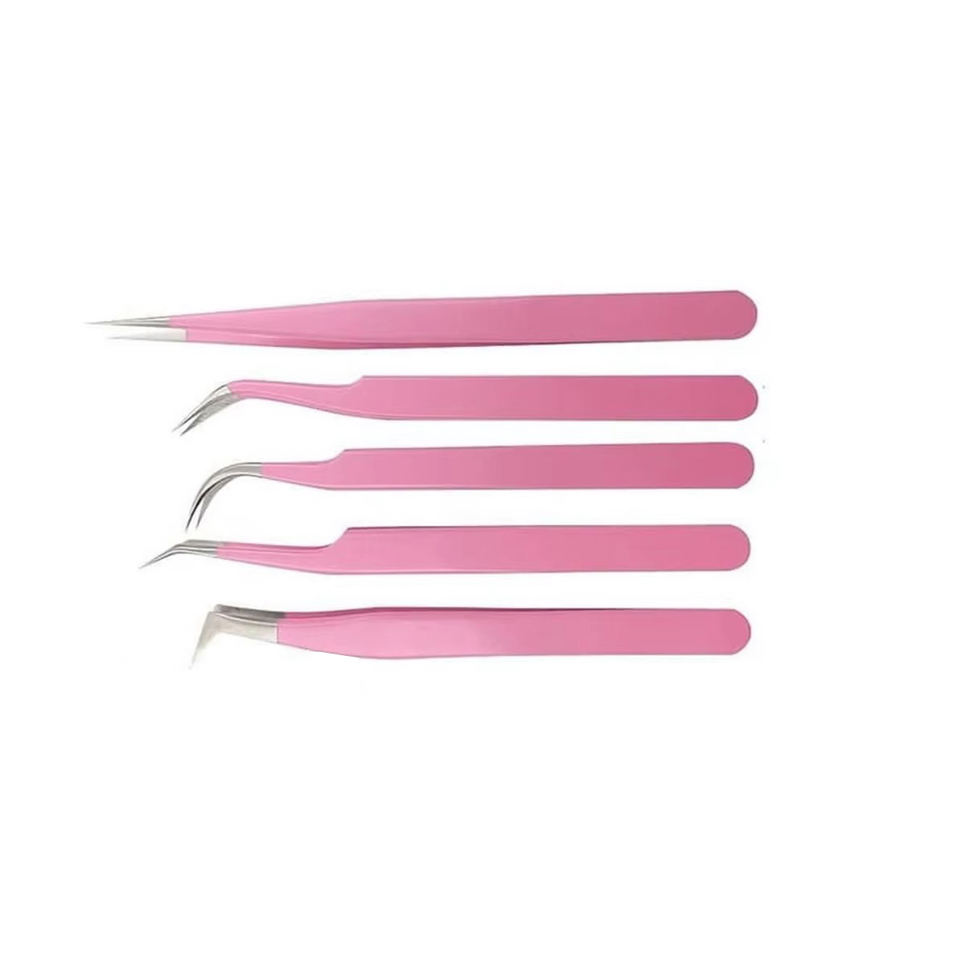 Applicateur de cils pochette rose ensemble de pinces à épiler en acier inoxydable poignée diamantée et pointe en fibre pince à épiler pour extension de cils
