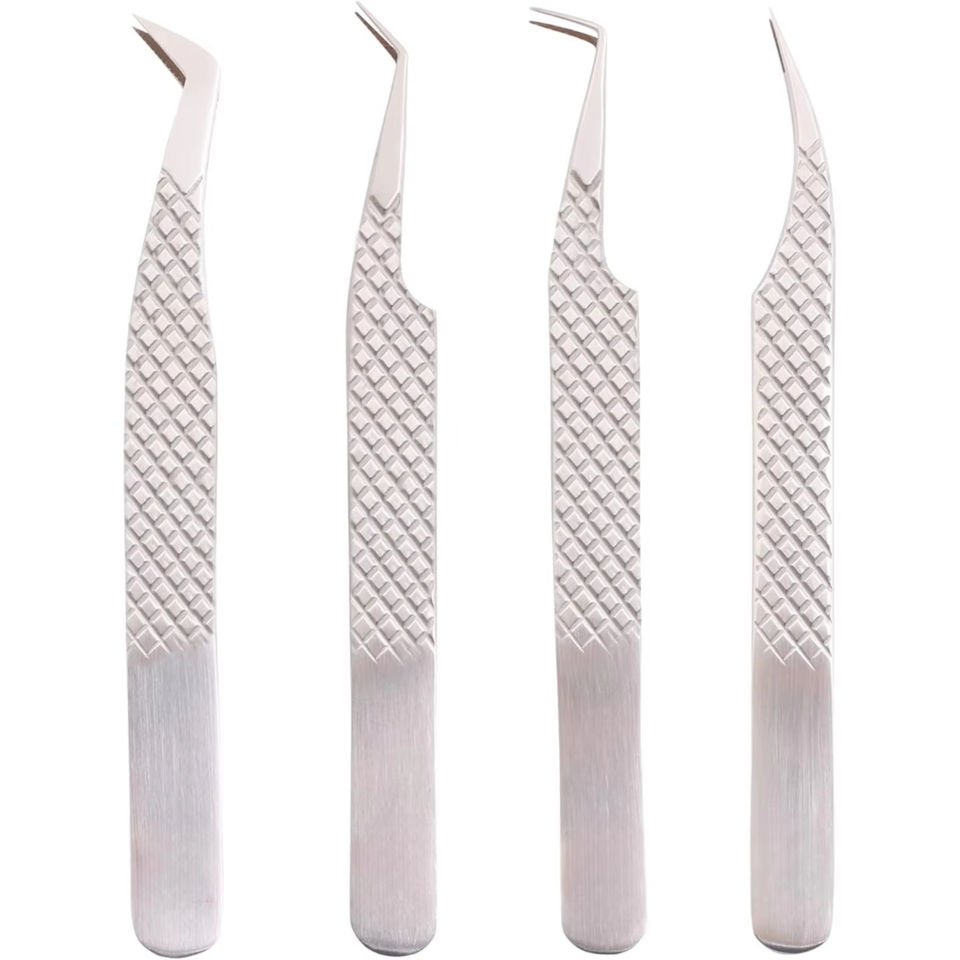 Pince à épiler pour extensions de cils 4pcs set Pince à épiler de précision pour extensions de cils en acier, poignée diamantée, pointe en fibre par H/N