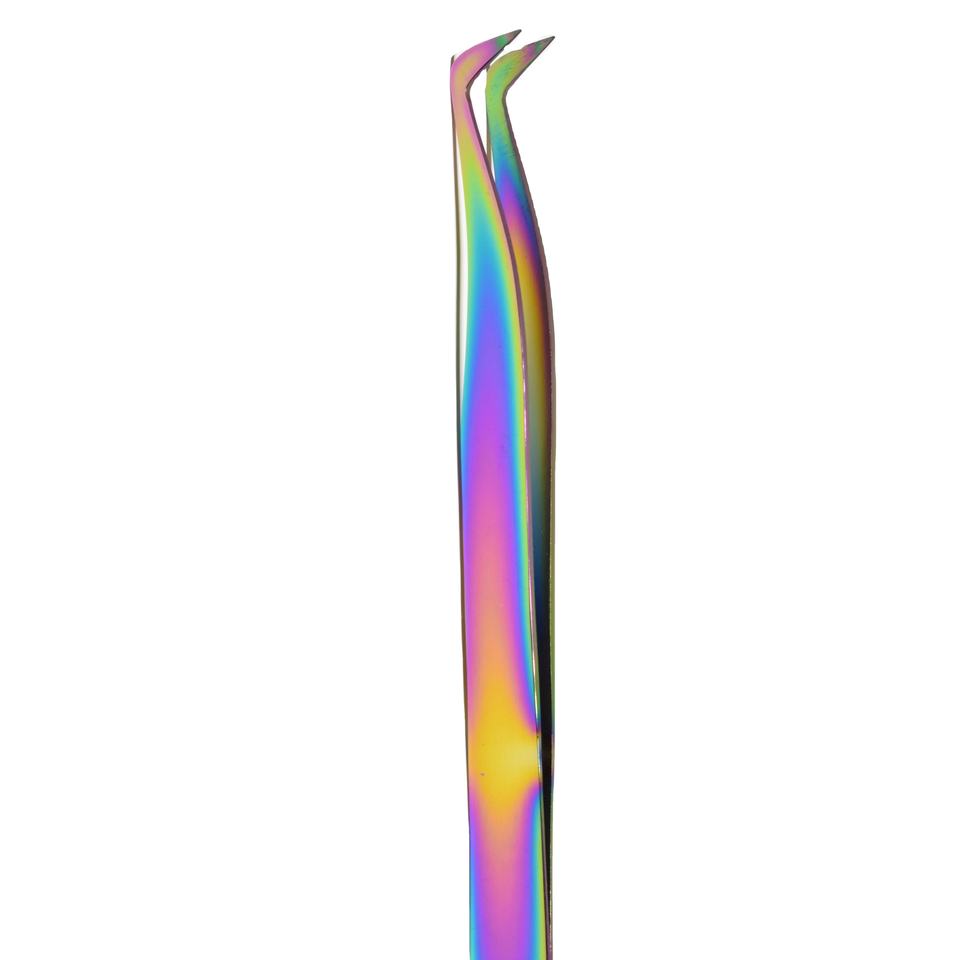 Pince à cils multi-couleurs finition plasma pointe pointue en acier inoxydable avec trous dans la poignée