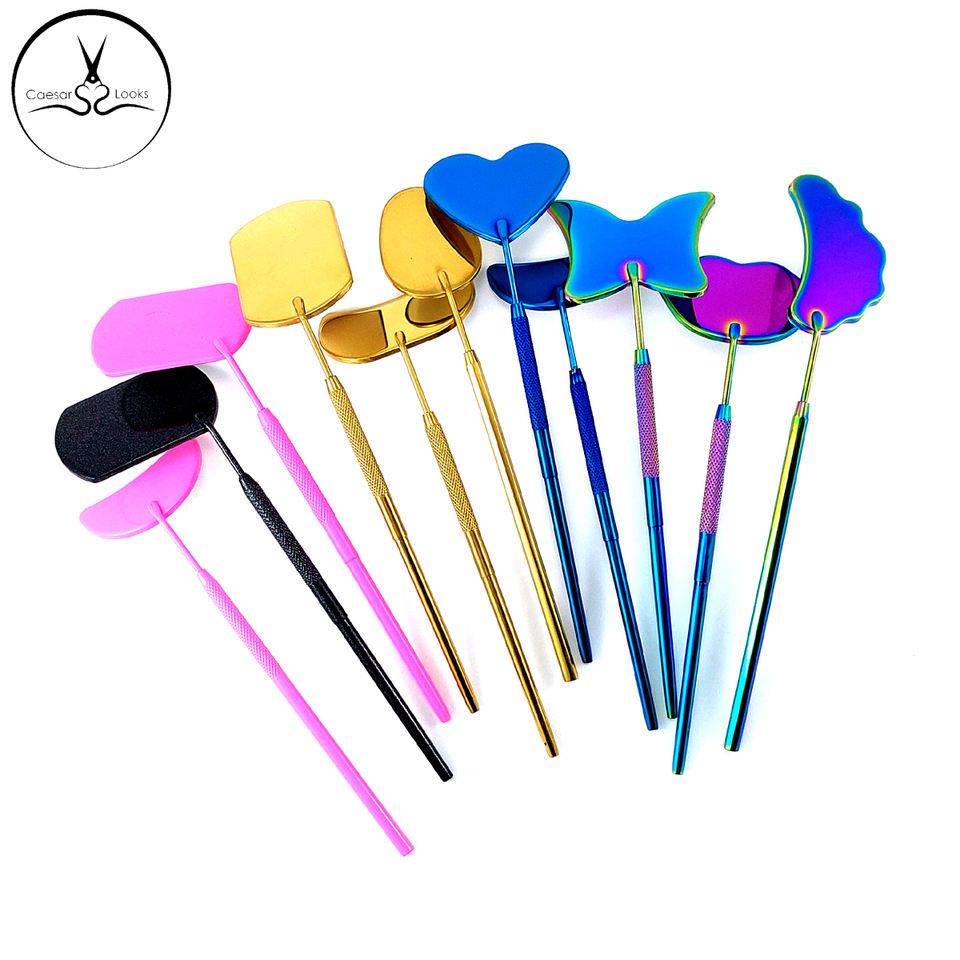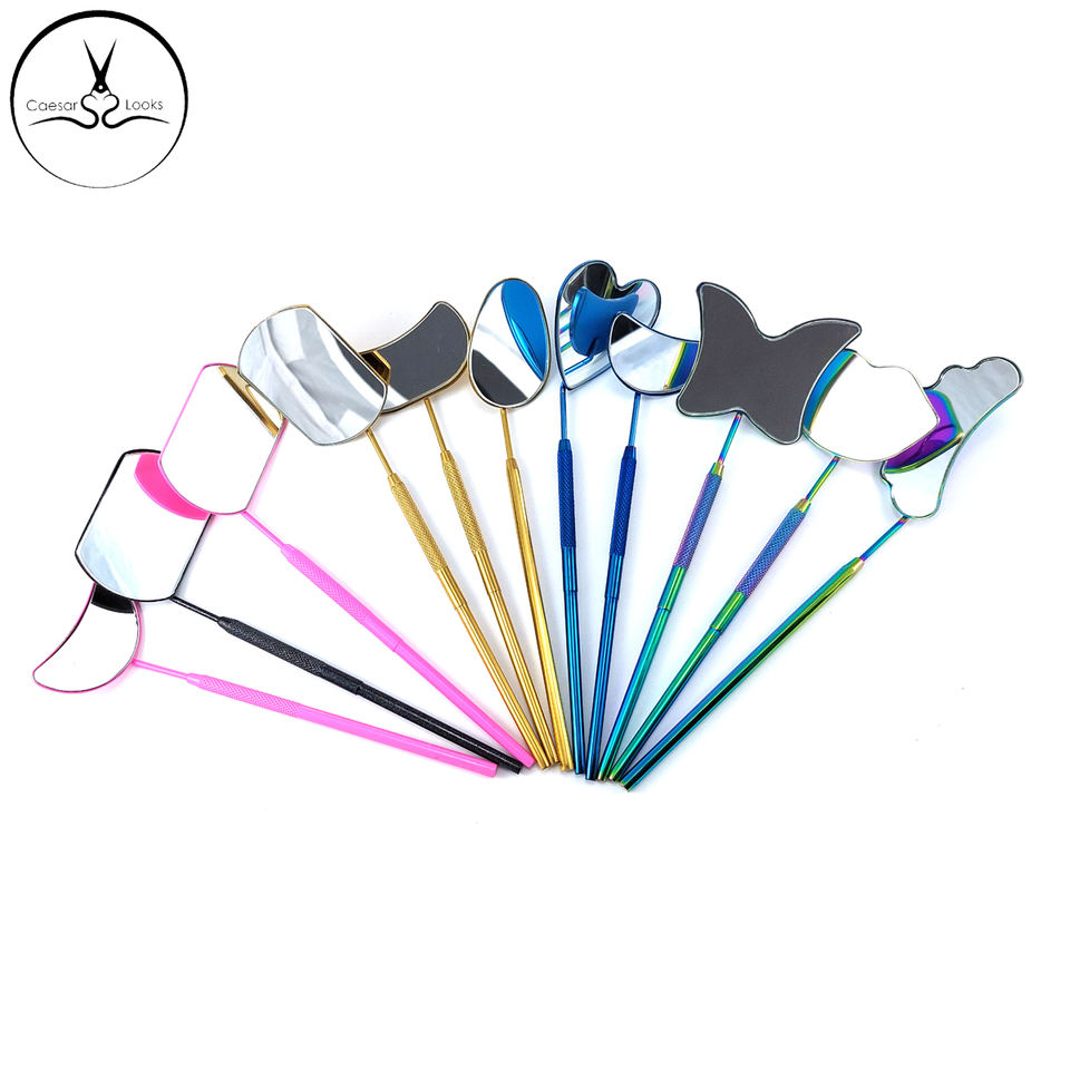 Pince à cils Caesar Looks CL-16M 90 degrés en acier inoxydable, applicateurs en fibre multicolores or, noir, bleu, rose, miroirs