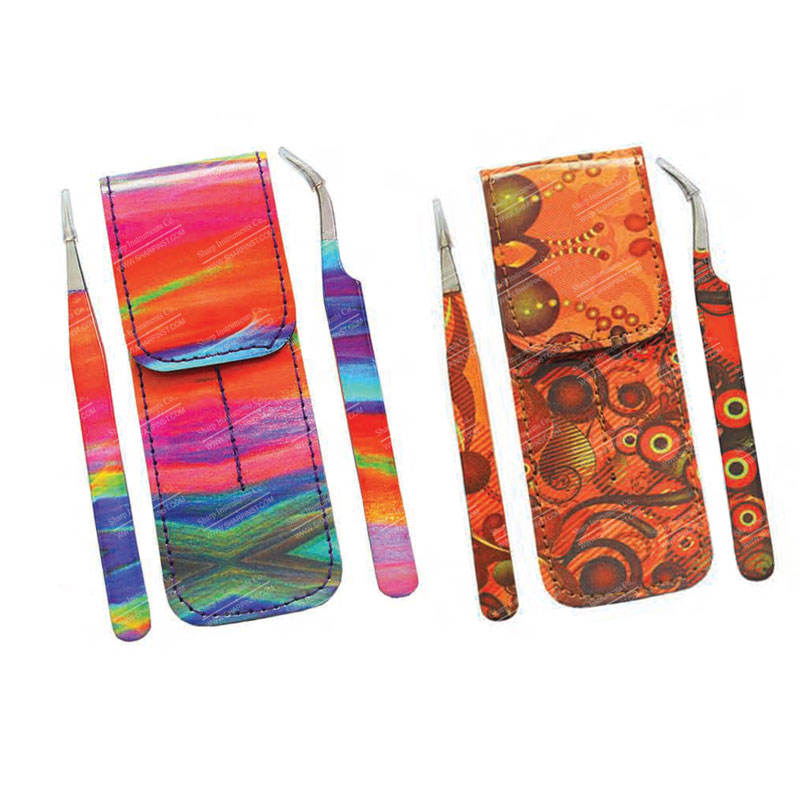 Name:Eyelash Tweezers 2 Piece Set with Magnet Button Pouch with-Pattren