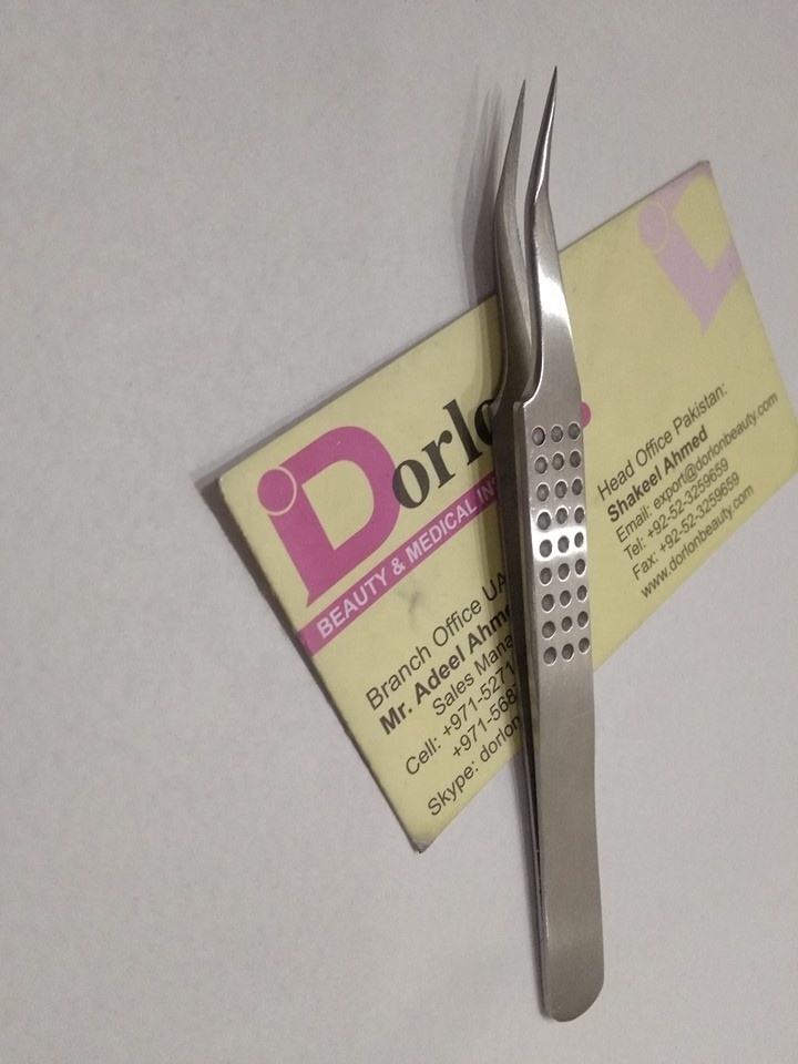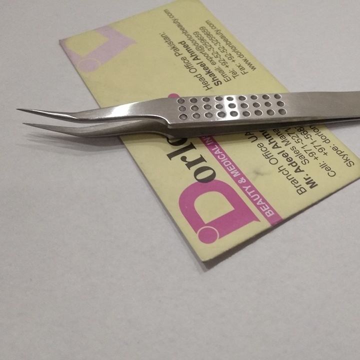 Pinces à épiler en acier inoxydable avec logo personnalisé, 45 degrés, étiquette privée, poignée à points professionnels, pointe incurvée, pince à épiler volumineuse