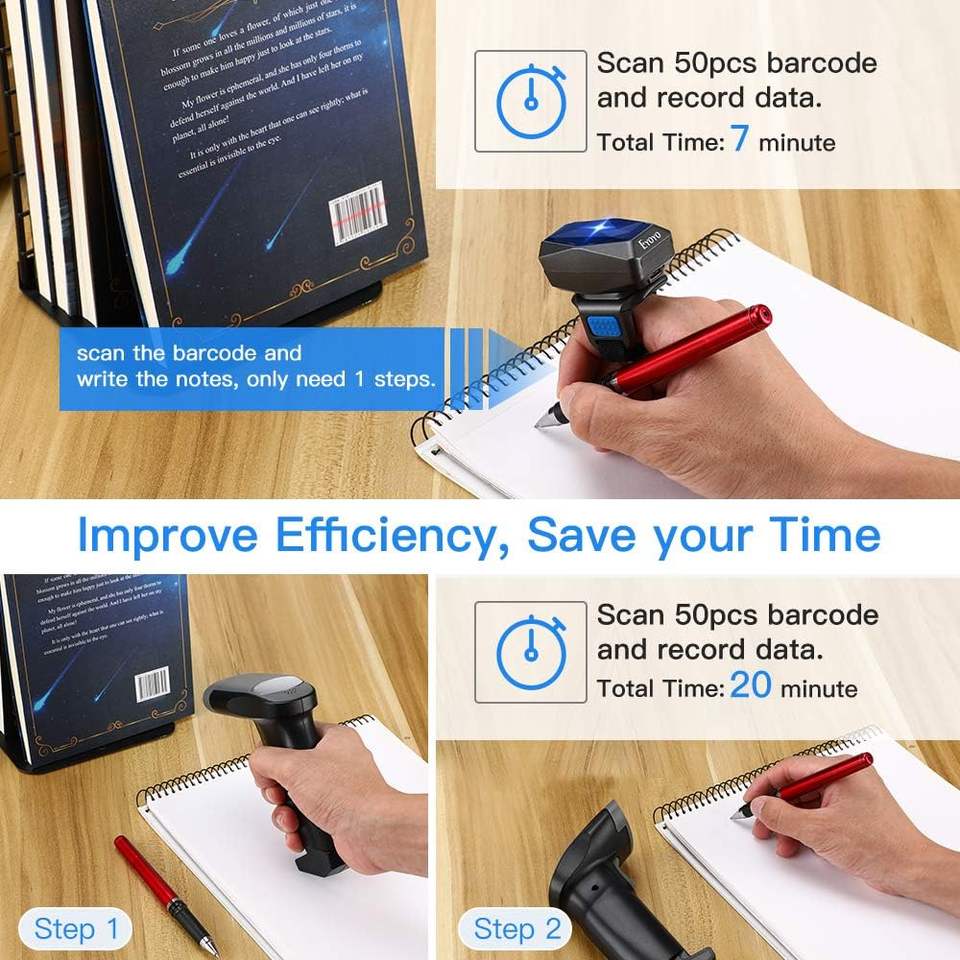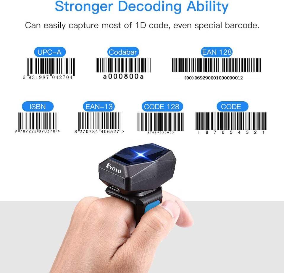 Eyoyo-Lecteur de codes à barres filaire Bluetooth portable, mini-doigt 1D, sans fil, pour tablette iPhone IPad