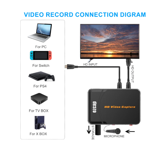 Ezcap 280 Boîte de capture vidéo HDMI 1080P HD Enregistrement Jeu Audio Carte de capture vidéo HDMI Pour Live Stream PS4 Caméra Console de jeu