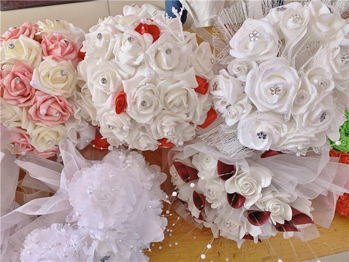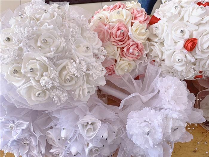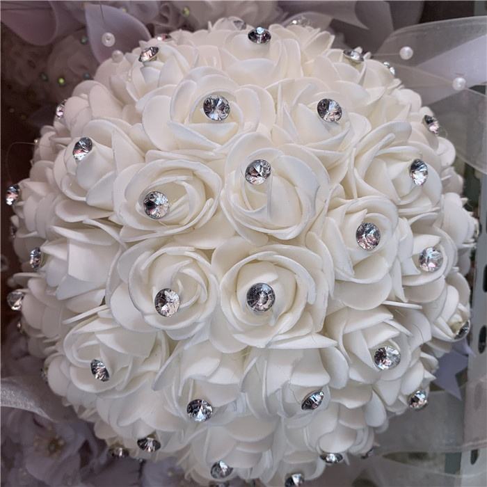 F-1571 OEM Fleurs artificielles en mousse blanche faites à la main pour la décoration de mariage, bouquet de mariée