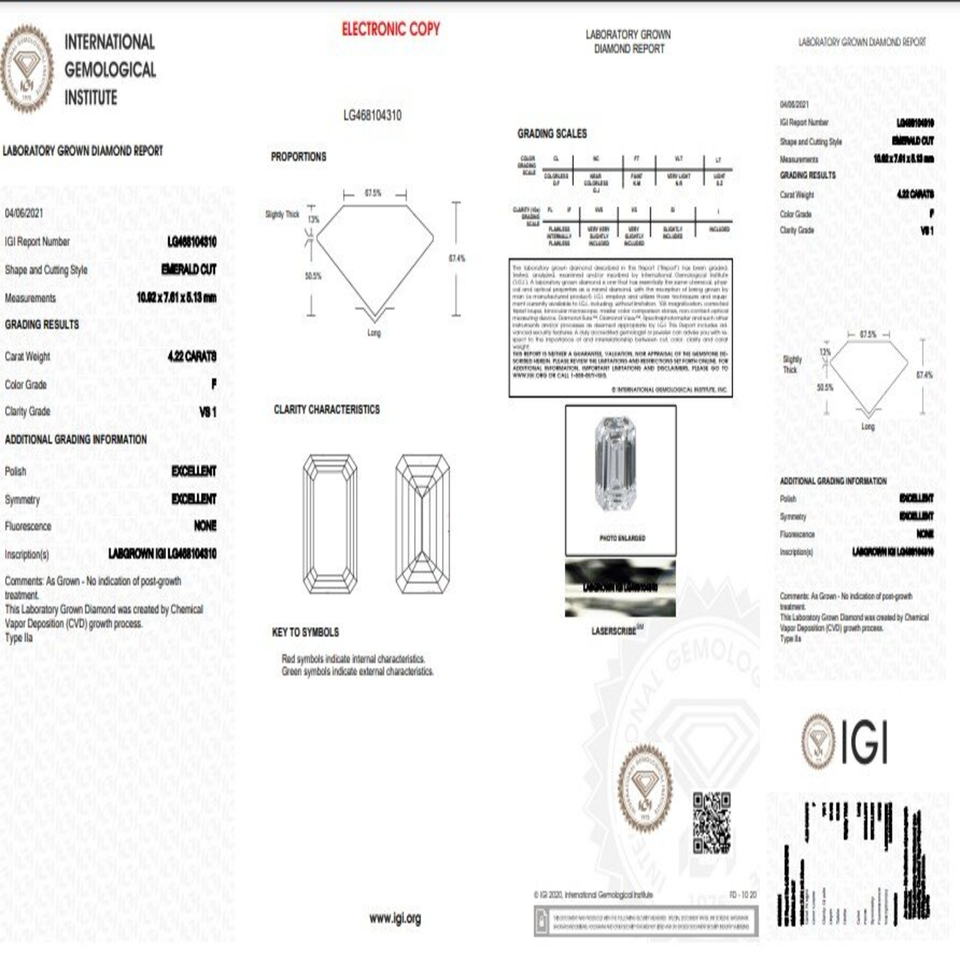 F Color VS1, taille de la clarté 4.22Ct, diamant poli en forme d'émeraude HPHT-CVD, bijoux en diamant en vrac
