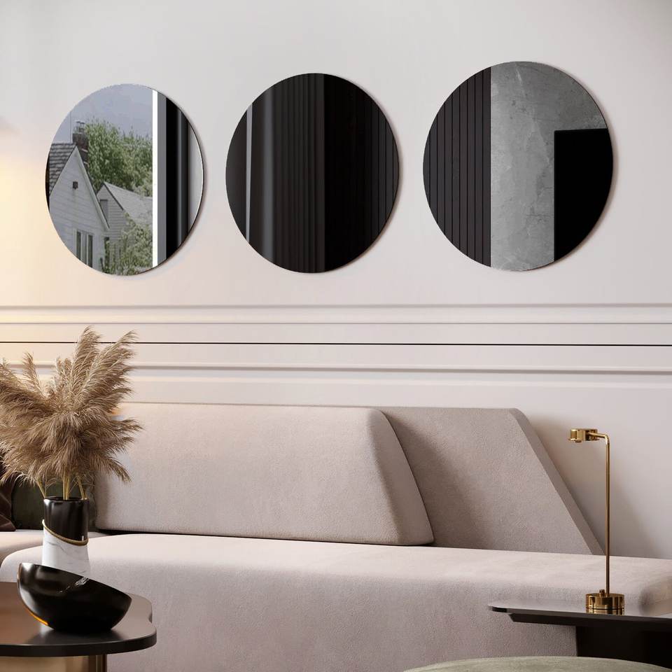 Ensemble de trois miroirs ronds modernes FYA en plastique couleur fumée pour la décoration du salon et de la salle de bain