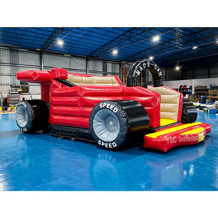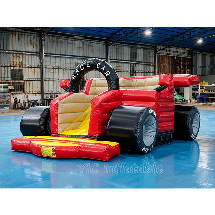 Château gonflable F1 avec toboggan, thème vitesse rouge, pour enfants, idéal pour les jeux d'aventure et les fêtes d'anniversaire